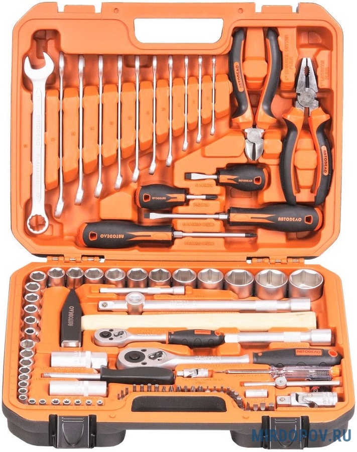 Комплектация набора профессионального инструмента оптимизирована для использования в автомобиле. Пожизненная гарантия (до полного физического износа). Торцевые головки изготовлены методом холодной штамповки. Профиль рабочей части Super Lock для более надежного захвата крепежа, особенно деформированного. В комплектации набора использованы комбинированные ключи повышенной точности, изготовленные методом холодной штамповки. Инструмент закален до твердости не менее 39 HRC. Применено хромовое защитно-декоративное покрытие с эффектом матовой поверхности. Набор упакован в двухцветный пластиковый чемодан с металлическими замками. Петли чемодана с металлическими осями.