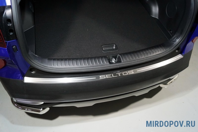 Накладка на задний бампер шлифованная с надписью Seltos для Kia Seltos (2020-2024) № KIASELT20-08