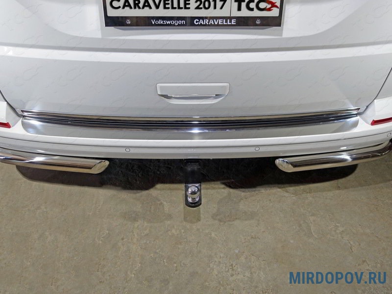Накладки на задний бампер (лист зеркальный) Volkswagen Caravelle (2017-2020) № VWCARAV17-01