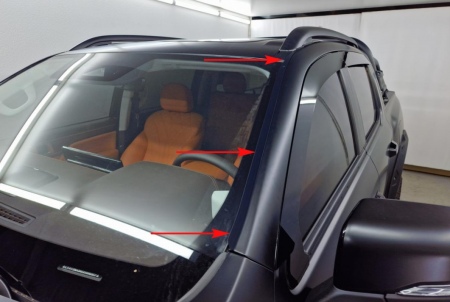 - Начните установку с нижней части стойки лобового стекла (рис. 2)