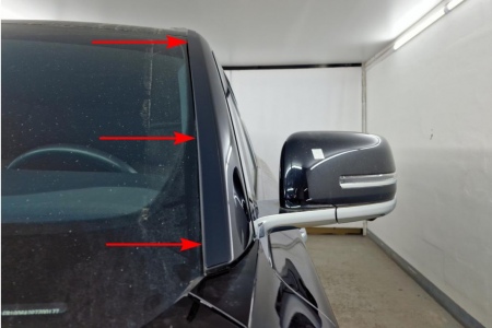 - Начните установку с нижней части стойки лобового стекла (рис. 2)