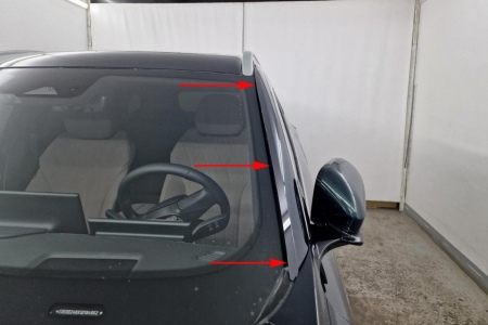 - Начните установку с нижней части стойки лобового стекла (рис. 2)