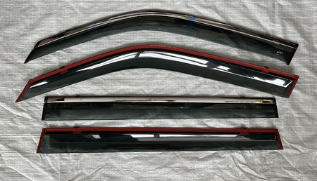 Дефлекторы боковых окон ALVI-STYLE изготовлены из экологически чистого акрилового пластика, специально для автомобилей с хромированной окантовкой стекол. Ветровики крепятся при помощи двухстороннего скотча , производства фирмы 3М
