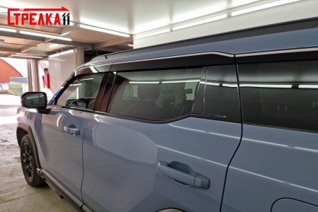 Дефлекторы боковых окон аэродинамические из 6-ти частей с хром молдингом Стрелка11 для Haval H3 (2024-2025) № 2D234-6C.S11