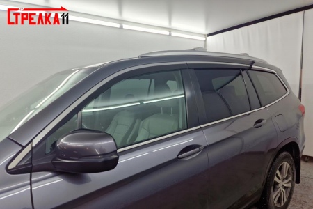 Дефлекторы боковых окон аэродинамические из 6-ти частей с хром молдингом Стрелка11 для Honda Pilot (2015-2025) № 2D164-6C.S11