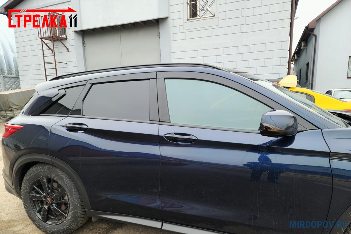 Дефлекторы боковых окон аэродинамические из 6-ти частей Стрелка11 для Infiniti QX50 (2018-2024) № 2D095-6.S11