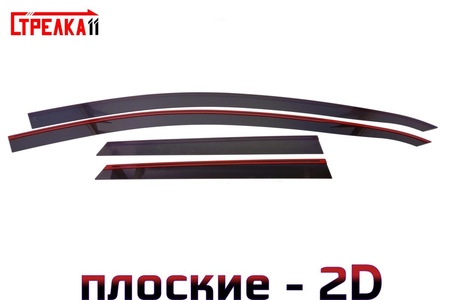 Аэродинамические дефлекторы боковых окон 2D – продукция ведущего российского производителя аксессуаров для автомобилей – компании «Стрелка11». Ветровики отличаются эргономичностью, высокими эксплуатационными характеристиками, долговечностью. Это модельные аксессуары, благодаря чему идеально подходят конкретной марке автомобиля – с тыльной и фронтальной стороны остаются незаметными.