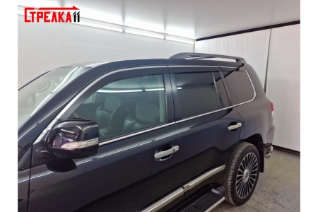 Дефлекторы боковых окон аэродинамические из 6-ти частей с хром молдингом Стрелка11 для Lexus LX (2012-2015) № 2D221-6C.S11