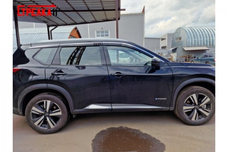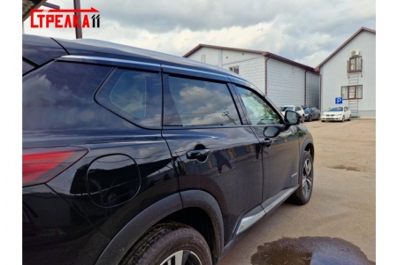 Дефлекторы боковых окон аэродинамические из 6-ти частей с хром молдингом Стрелка11 для Nissan X-Trail (2022-2025) № 2D206-6C.S11
