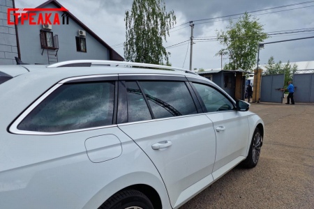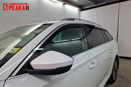 Дефлекторы боковых окон аэродинамические из 6-ти частей с хром молдингом Стрелка11 для Skoda Superb универсал (2015-2024) № 2D013-6C.S11