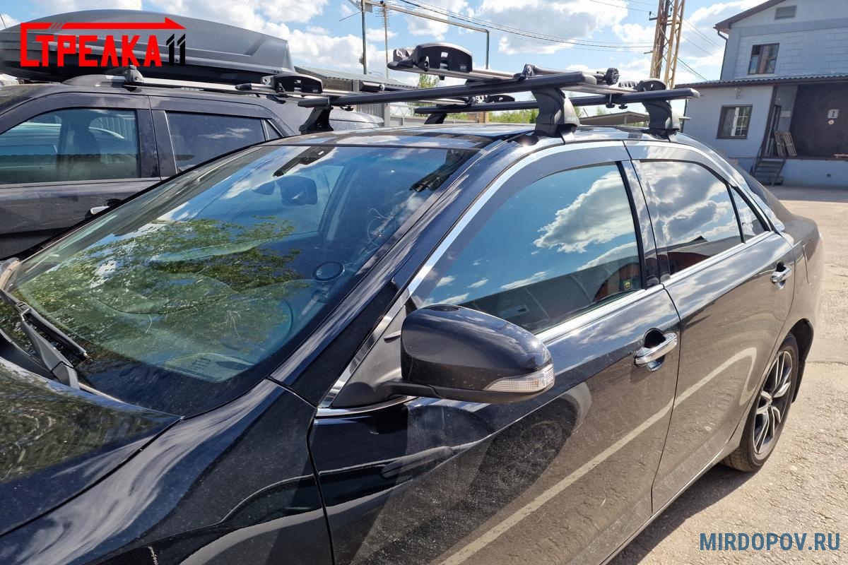 Дефлекторы боковых окон аэродинамические из 8-ми частей с хром молдингом Стрелка11 для Toyota Camry (2014-2018) № 2D001-8C.S11