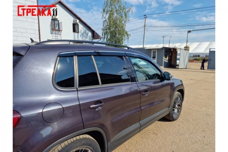 Дефлекторы боковых окон аэродинамические из 6-ти частей с хром молдингом Стрелка11 для Volkswagen Tiguan (2007-2017) № 2D224-6C.S11