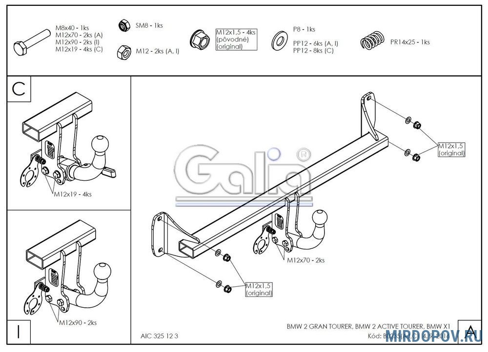 Фаркоп оцинкованный с быстросъемным шаром Galia для BMW X1 (2015-) № B023C