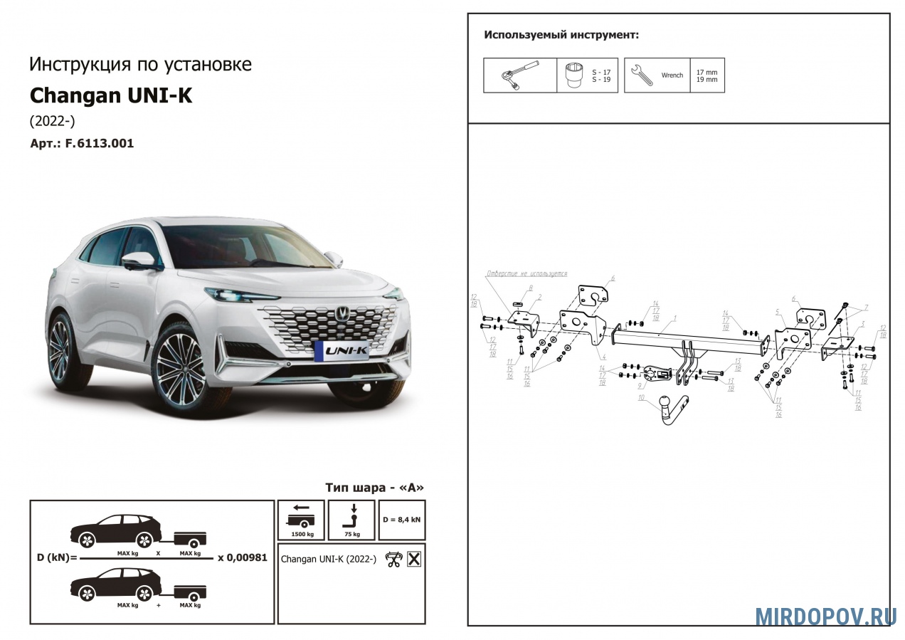 Фаркоп Berg с шаром A для Changan Uni-K (2022-2025) № F.6113.001