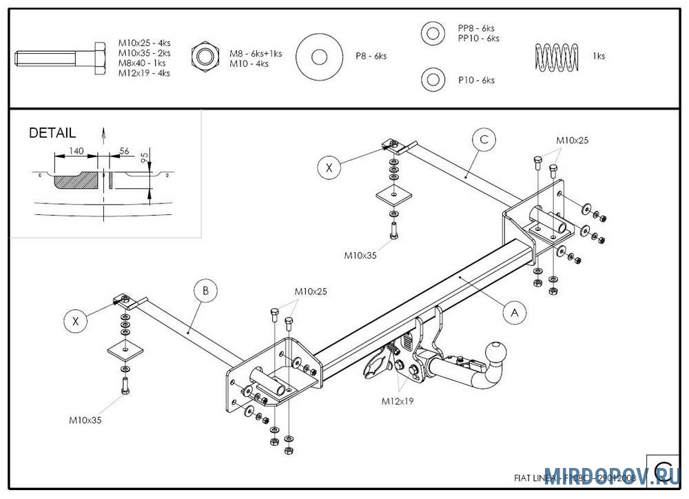 Фаркоп оцинкованный Galia для FIAT Linea (2007-2015) № F108A