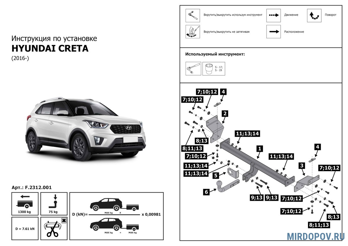 Фаркоп Berg для Hyundai Creta (2016-2021) № F.2312.001