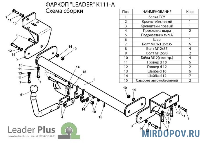Конструкция фаркопа «Leader» позволяет при необходимости легко демонтировать шар. Фаркоп становится незаметным и позволяет сохранить красоту линий автомобиля.