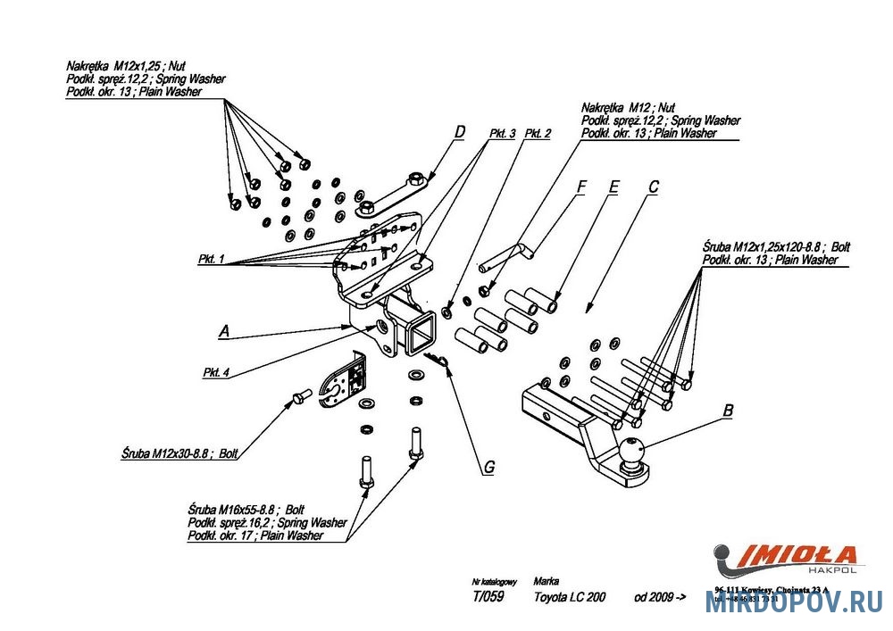 Польская компания IMIOLA-HAKPOL была основана в 1991 г. Специализируется на производстве фаркопов (тягово-сцепных устройств) для более чем 700 моделей легковых автомобилей. На заводах IMIOLA используются только самые современные технологии производства фаркопов. Продукция обладает необходимыми европейскими сертификатами Е20 и PIMOT, а также российским и белорусским сертификатами соответствия. Продукция IMIOLA успешно продается практически во всех европейских странах и пользуется все большей популярностью. Все ТСУ сертифицированы и соответствуют ГОСТ Р 41.55 — 2005 и ТУ 4591-001-89237350-2010, диаметр сцепного шара 50мм.