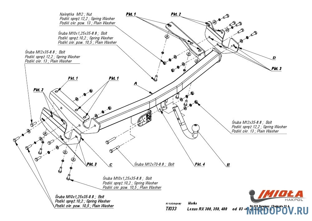 Польская компания IMIOLA-HAKPOL была основана в 1991 г. Специализируется на производстве фаркопов (тягово-сцепных устройств) для более чем 700 моделей легковых автомобилей. На заводах IMIOLA используются только самые современные технологии производства фаркопов. Продукция обладает необходимыми европейскими сертификатами Е20 и PIMOT, а также российским и белорусским сертификатами соответствия. Продукция IMIOLA успешно продается практически во всех европейских странах и пользуется все большей популярностью. Все ТСУ сертифицированы и соответствуют ГОСТ Р 41.55 — 2005 и ТУ 4591-001-89237350-2010, диаметр сцепного шара 50мм.
