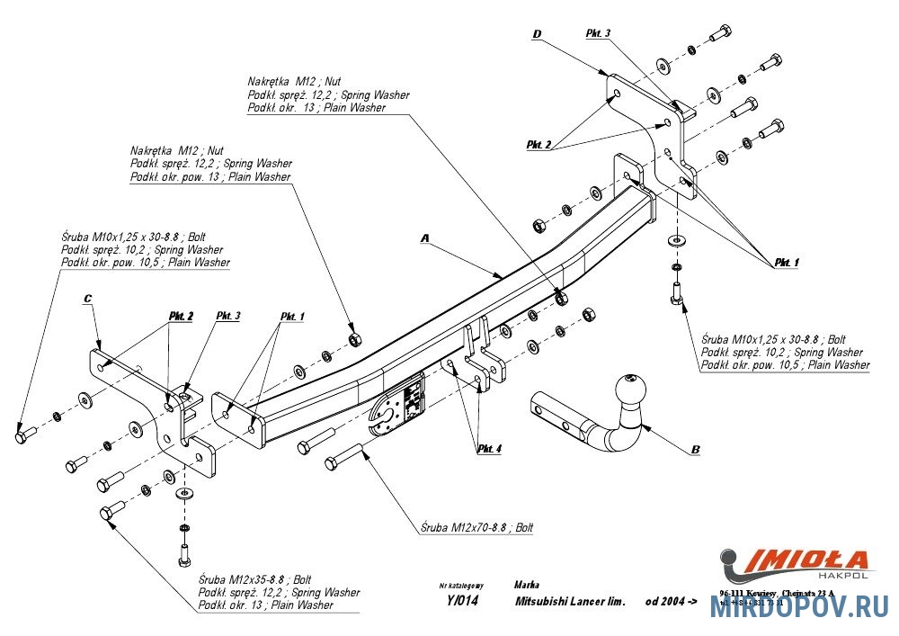 Фаркоп Imiola для Mitsubishi Lancer седан/хетчбек/универсал (2004-2007) № Y.014