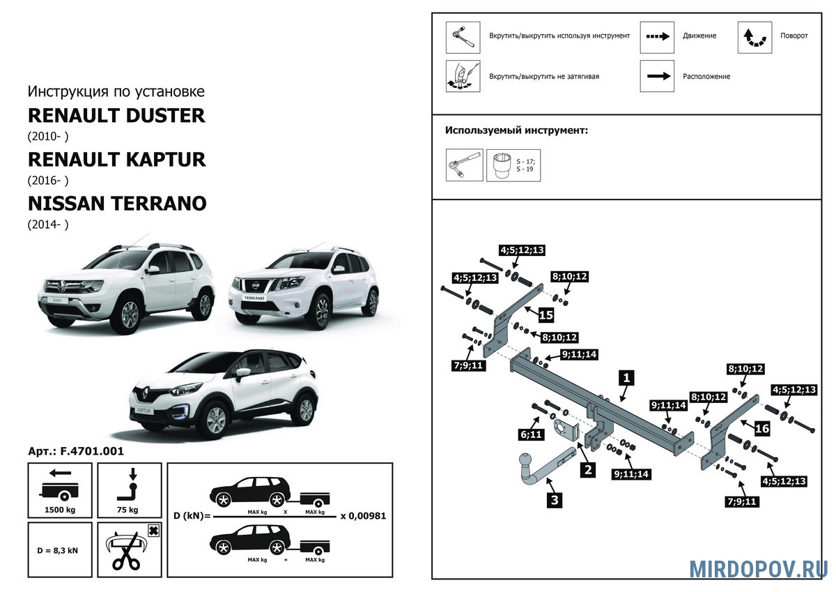 Фаркоп Rival для Nissan Terrano (2014-2023) № F.4701.001