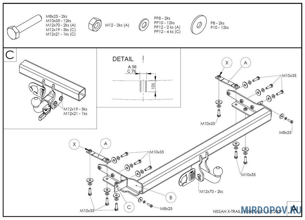 Фаркоп оцинкованный с быстросъемным шаром Galia для Nissan X-Trail (2001-2007) № N040C