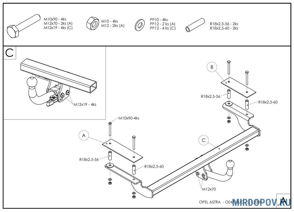 Фаркоп оцинкованный Galia для Opel Astra хетчбек (2004-2009) № O047A