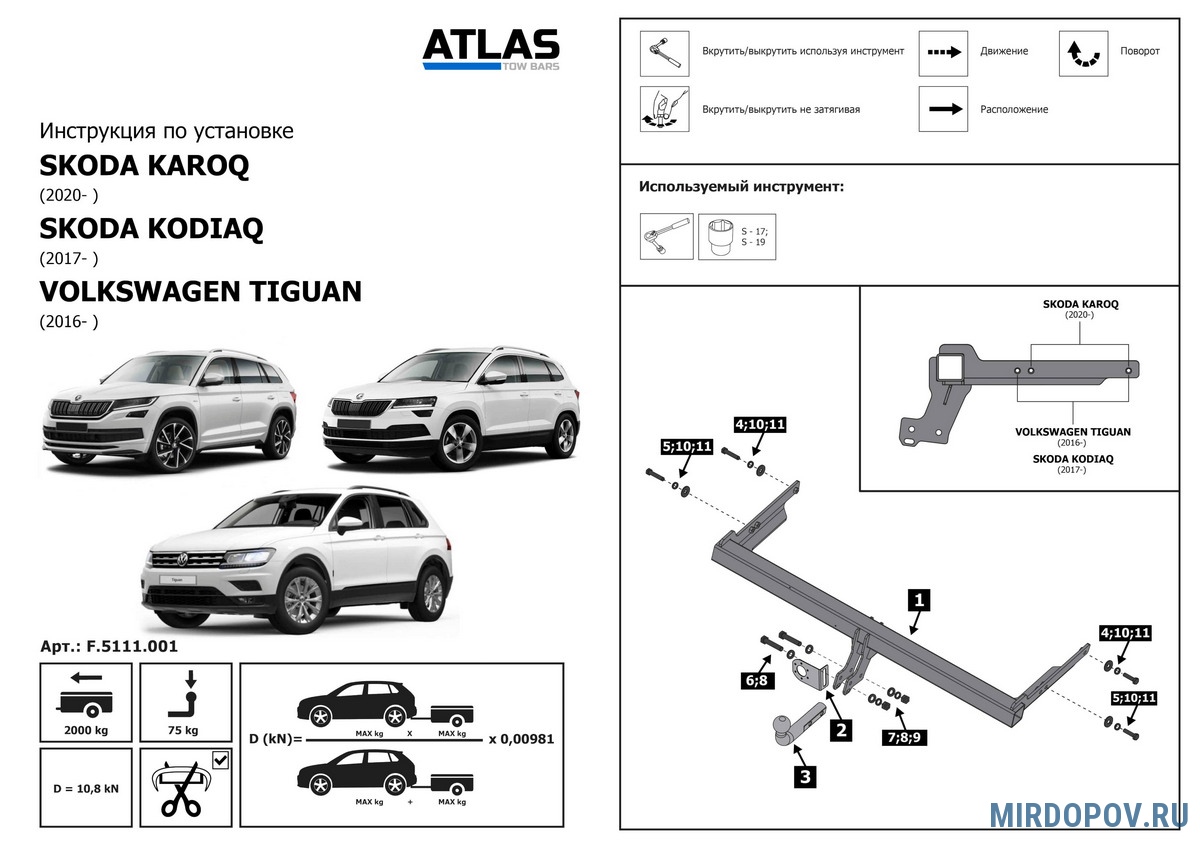 Фаркоп Berg для Skoda Kodiaq (2017-2023) № F.5111.001