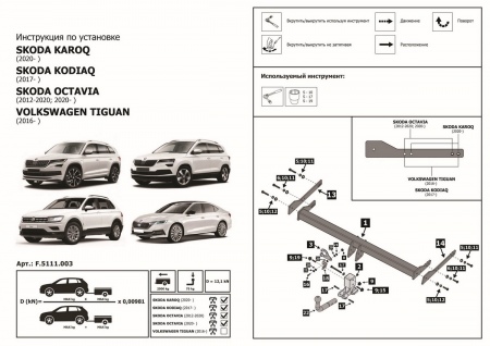 Фаркоп быстросъемный BERG для Skoda Kodiaq (2017-2025) № F.5111.003