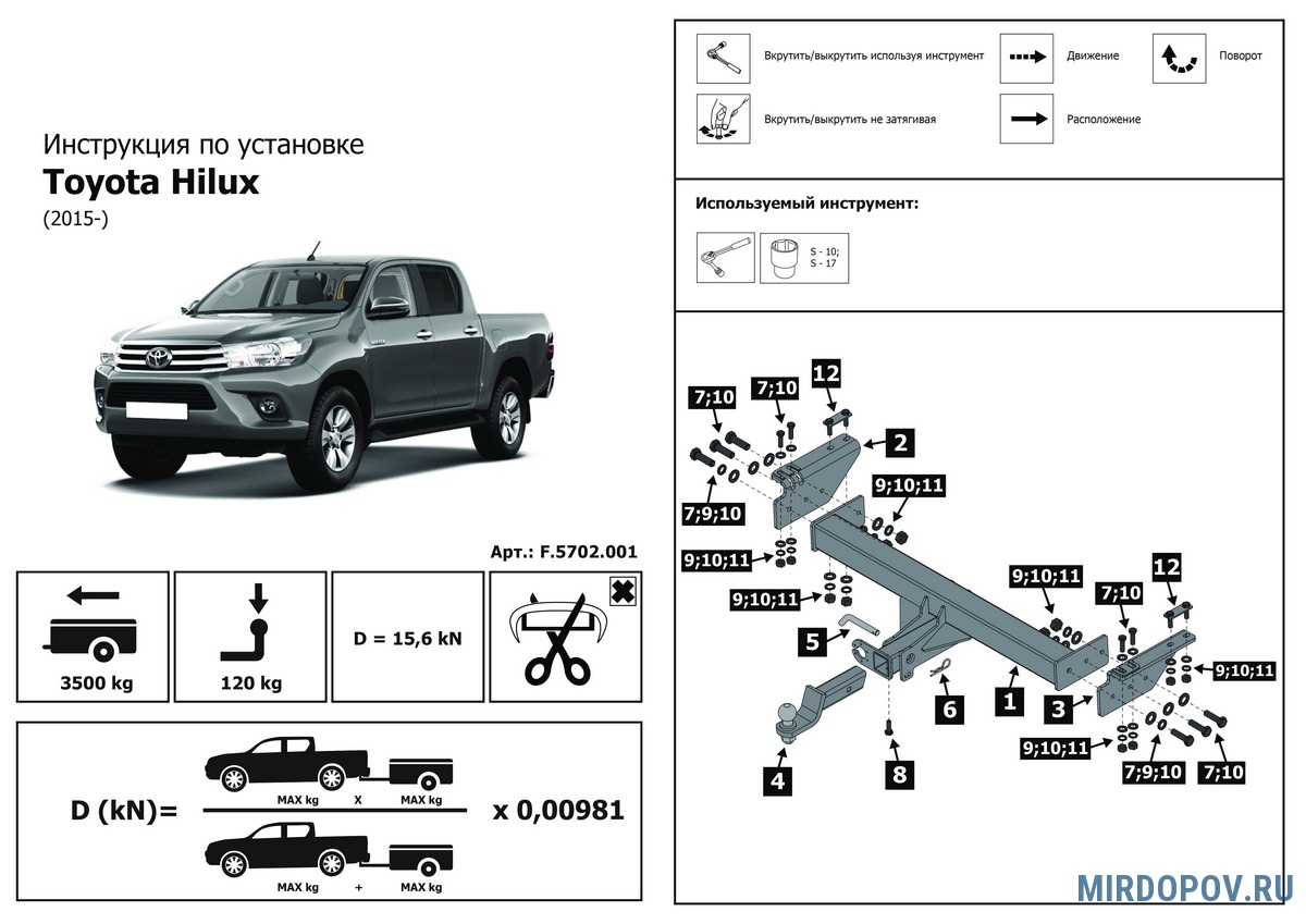Фаркоп Rival для Toyota Hilux (2015-2025) № F.5702.001