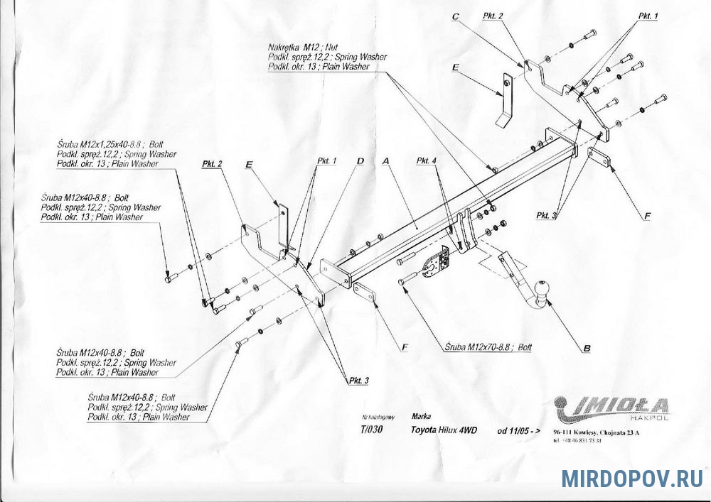 Польская компания IMIOLA-HAKPOL была основана в 1991 г. Специализируется на производстве фаркопов (тягово-сцепных устройств) для более чем 700 моделей легковых автомобилей. На заводах IMIOLA используются только самые современные технологии производства фаркопов. Продукция обладает необходимыми европейскими сертификатами Е20 и PIMOT, а также российским и белорусским сертификатами соответствия. Продукция IMIOLA успешно продается практически во всех европейских странах и пользуется все большей популярностью. Все ТСУ сертифицированы и соответствуют ГОСТ Р 41.55 — 2005 и ТУ 4591-001-89237350-2010, диаметр сцепного шара 50мм.
