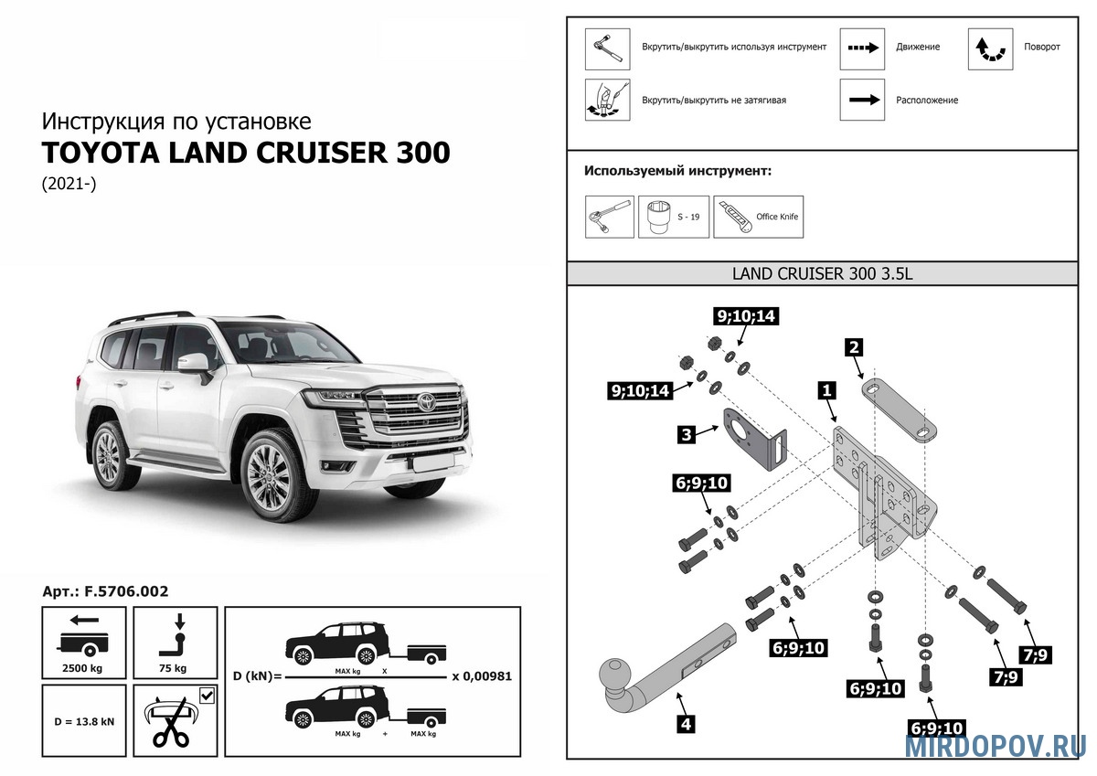 Фаркоп Rival для Toyota Land Cruiser 300 (2021-2025) № F.5706.002