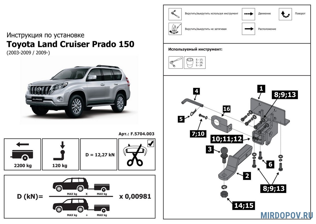 Фаркоп BERG для Toyota Land Cruiser Prado кроме комплектации Black Onyx (2002-2024) № F.5714.003