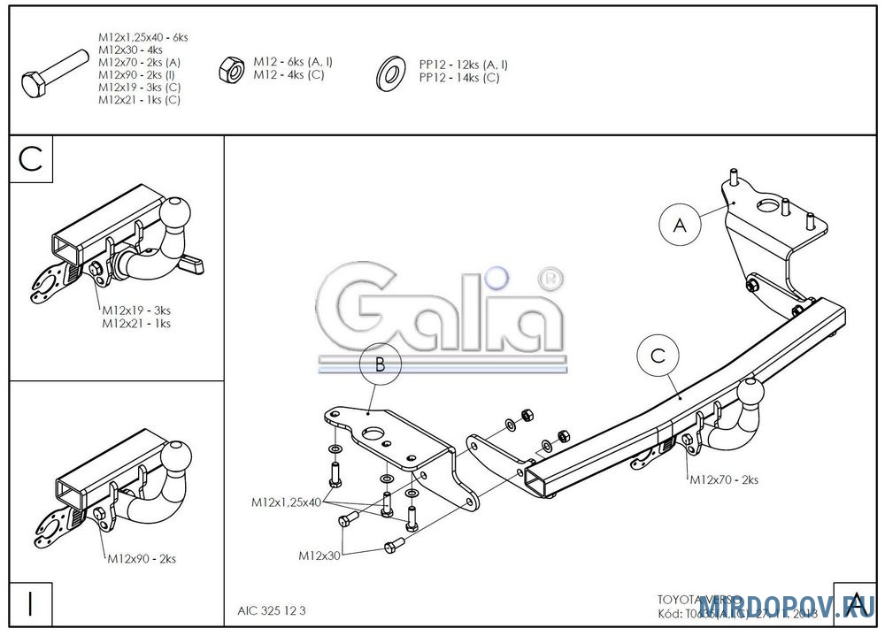 Фаркоп оцинкованный Galia для Toyota Verso (2009-2016) № T063A