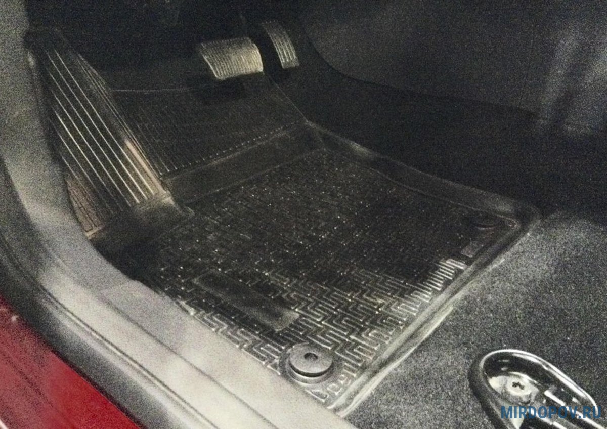 - Фиксация ковриков осуществляется благодаря специальным креплениям, которые совпадают со штатными элементами фиксации.