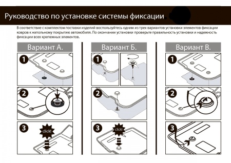 - Система крепления позволяет зафиксировать коврик надежно, исключая эффект скольжения и смещения коврика.