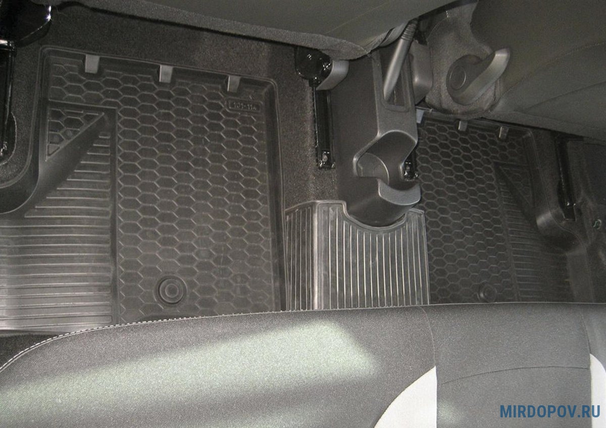 - Фиксация ковриков осуществляется благодаря специальным креплениям, которые совпадают со штатными элементами фиксации.