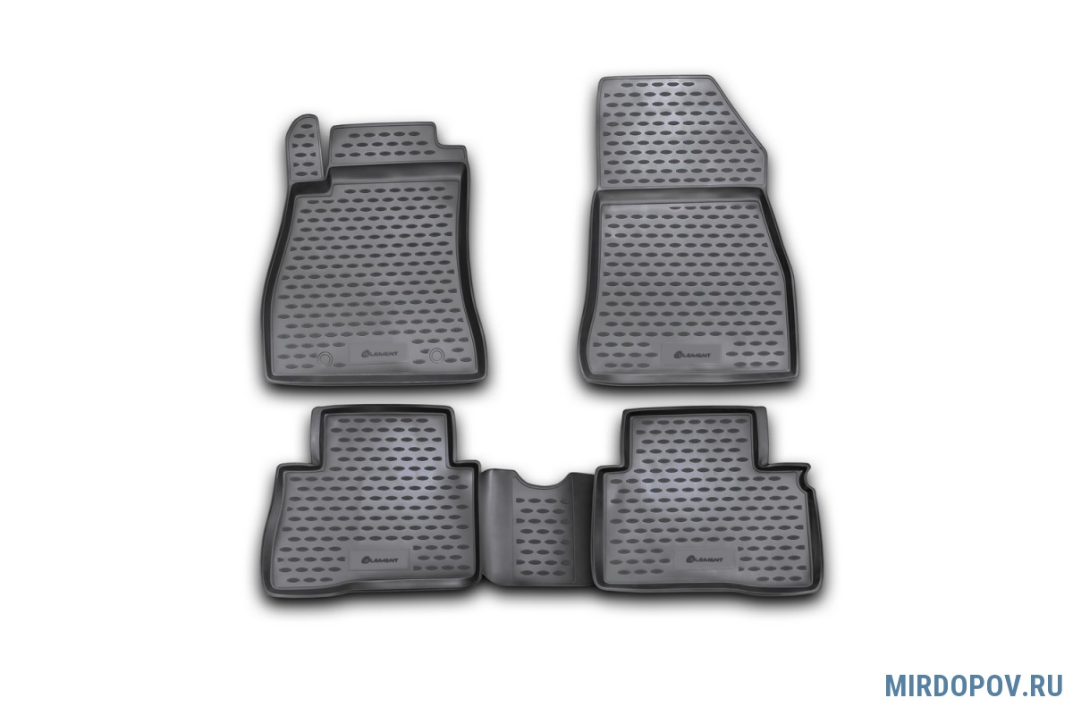 Полиуретаное коврики в салон Element - произведены из полимерного материала. Основной функцией ковров является защита салона салона авто от загрязнения. Борта ковриков (3-4 см), перемычка на тоннель заднего сидения, 3D выступ в зоне отдыха левой ноги водителя а также свойства материала позволяют дополнительно обеспечить надежну защиту от влаги и грязи. Фиксация кориков осуществляется при помощи специальных крепежей, которые идут в комплекте (для автомобилей в которых предусмотрены штатные крепления).