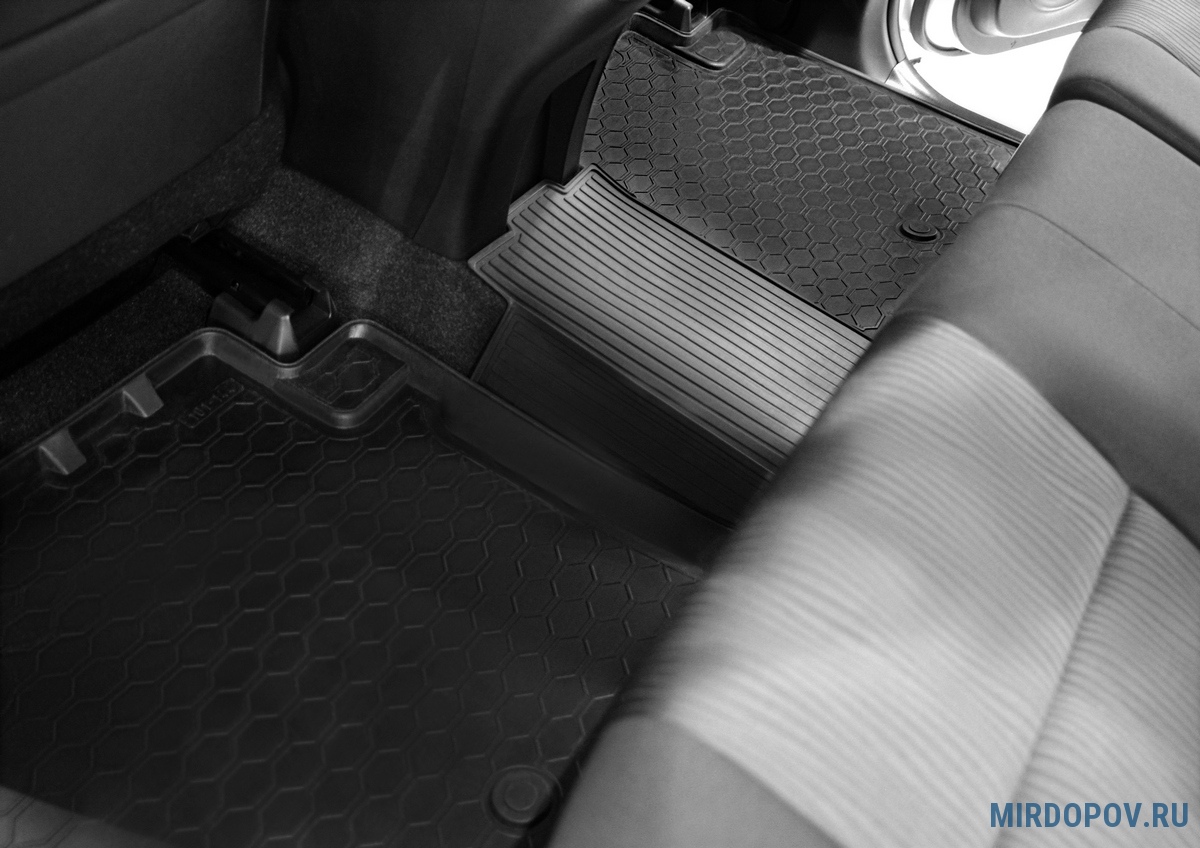 - Фиксация ковриков осуществляется благодаря специальным креплениям, которые совпадают со штатными элементами фиксации.