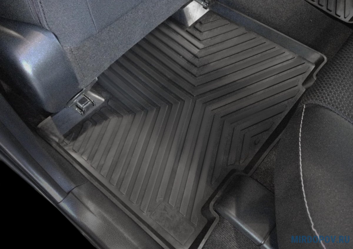 - Высокие бортики и специальный узор на поверхности предупреждают попадание влаги и грязи на оригинальное покрытие салона.