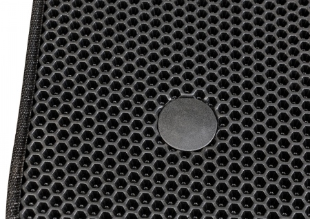 - Фиксация с помощью штатных крючков и липучек с обратной стороны коврика помогает надёжно закрепить изделие в салоне автомобиля.