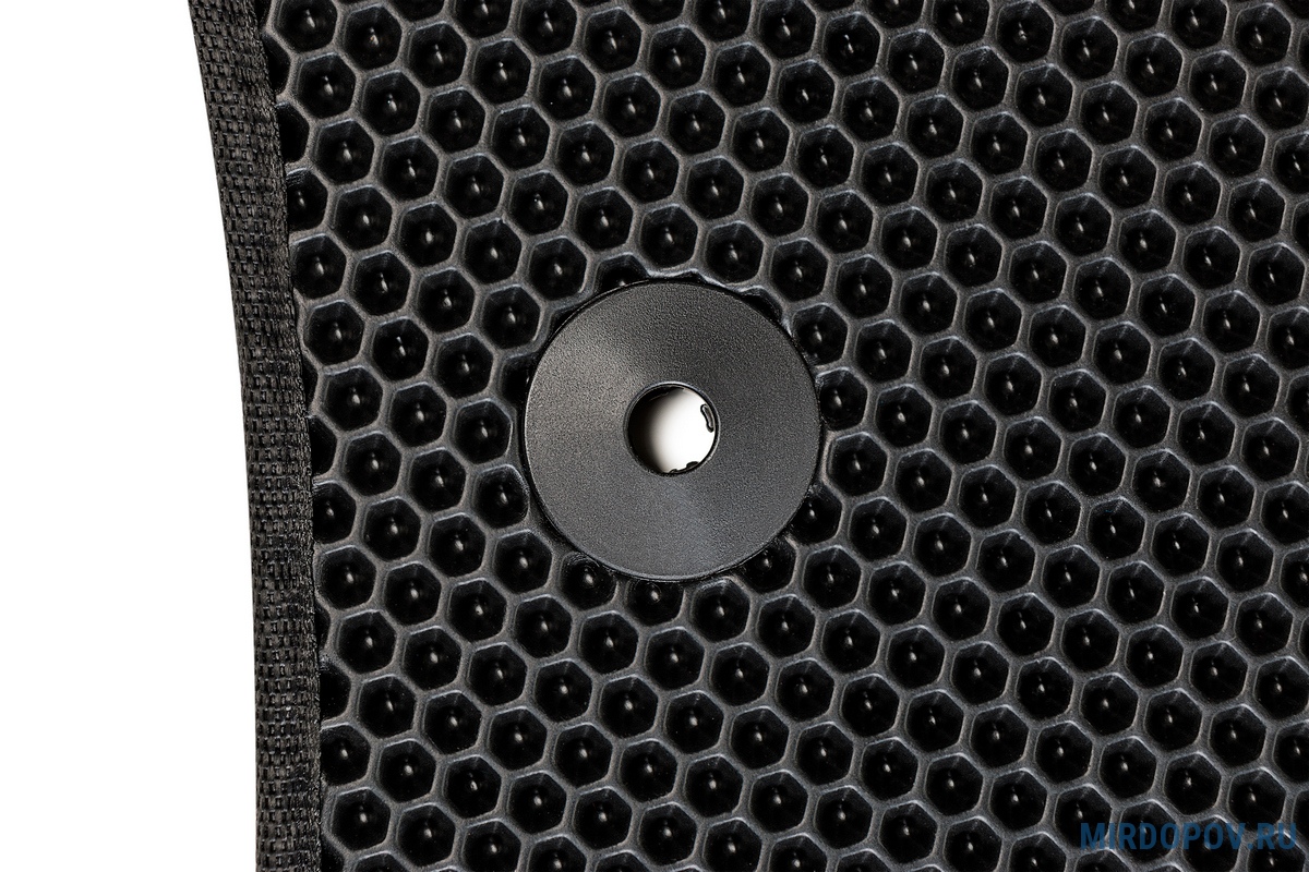 - Фиксация с помощью штатных крючков и липучек с обратной стороны коврика помогает надёжно закрепить изделие в салоне автомобиля.