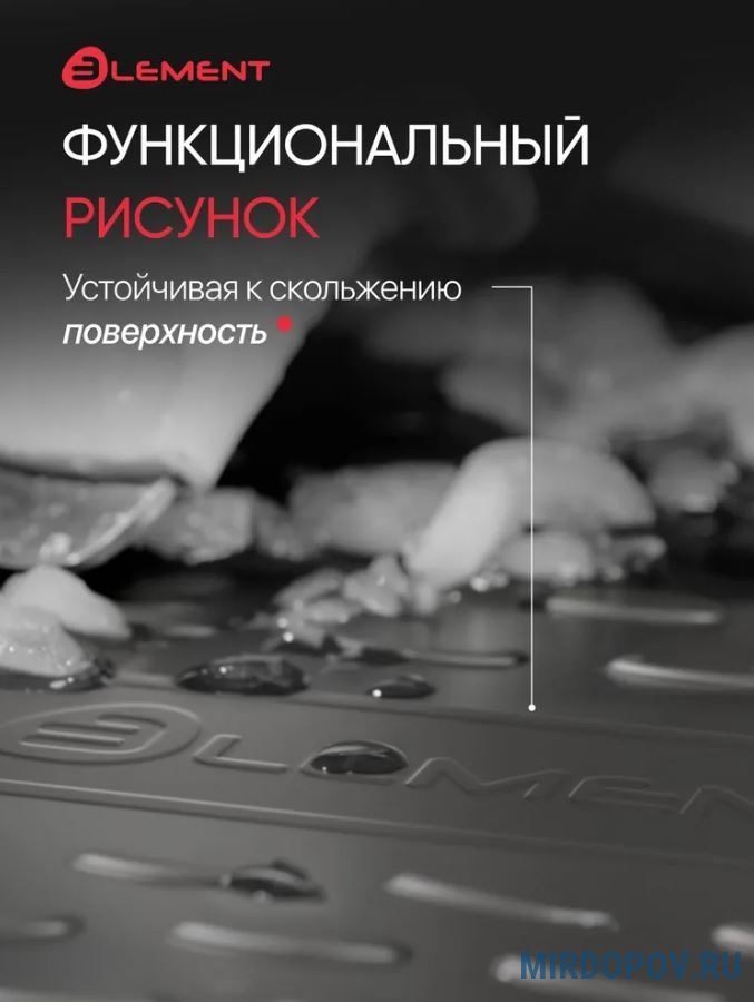 Полимерные коврики в багажник Element изготовлены из экологически чистого материала (термоэластопласта). Коврики Element разрабатываются с учетом индивидуальных особенностей каждого автомобиля, гарантируя полное соответствие коврика профилю пола.