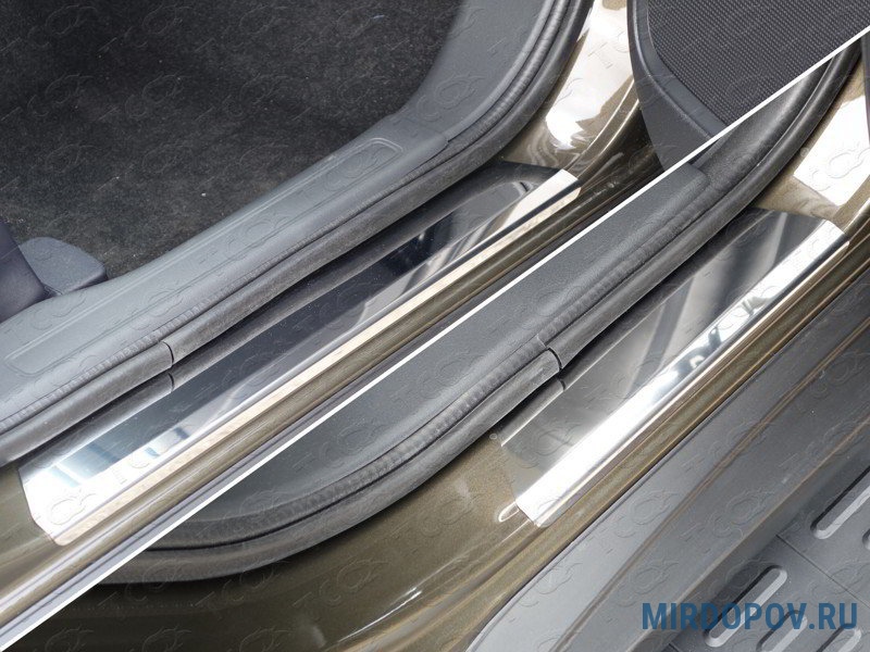 Накладки на пороги – это обязательный атрибут для каждого авто. Аксессуары идеально становятся в отведенное пространство на подножке благодаря тому, что они изготавливаются на высокоточном оборудовании с применением современных технологических решений.