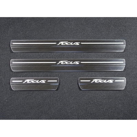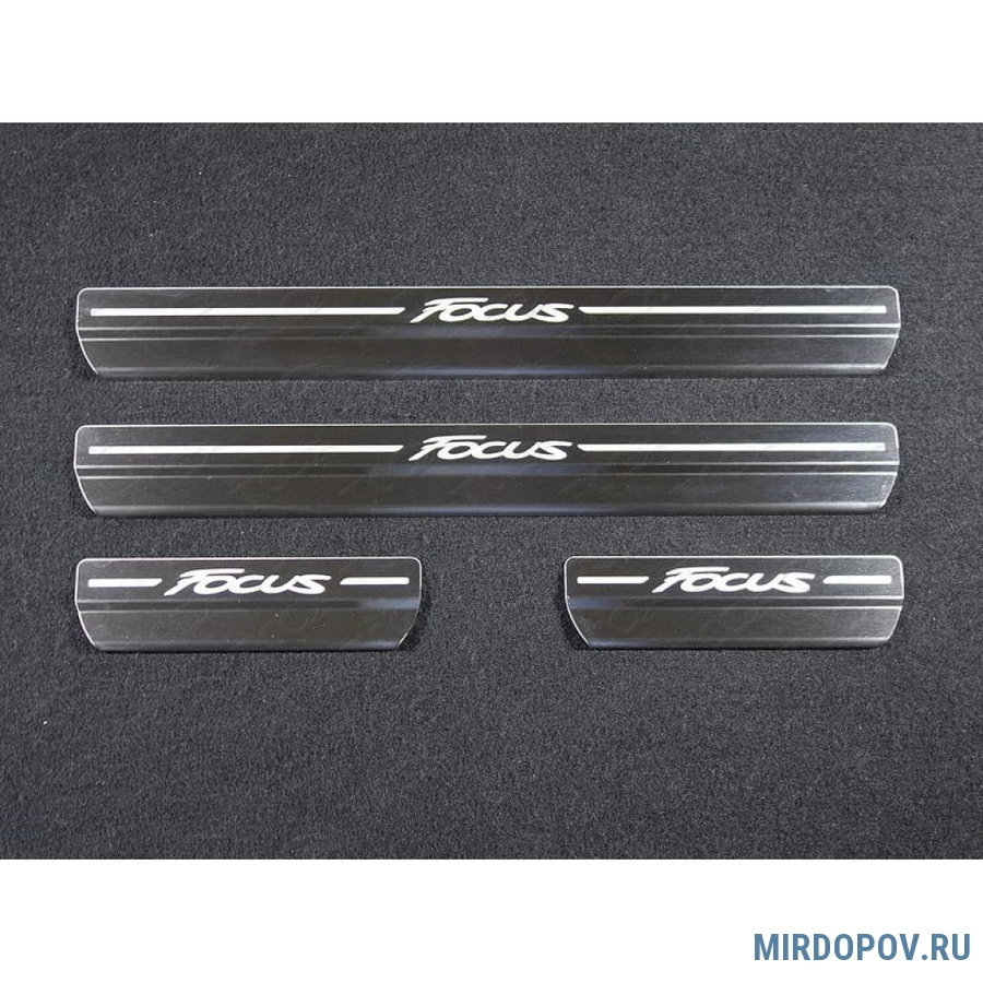 Накладки на пороги (лист шлифованный с надписью Focus) Ford Focus (2011-2019) № FORFOC11-13