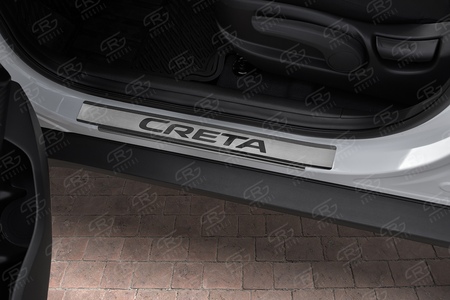 Накладки на пороги шлифованные с надписью RUSSTAL для Hyundai Creta (2016-2025) № HYCER16-03