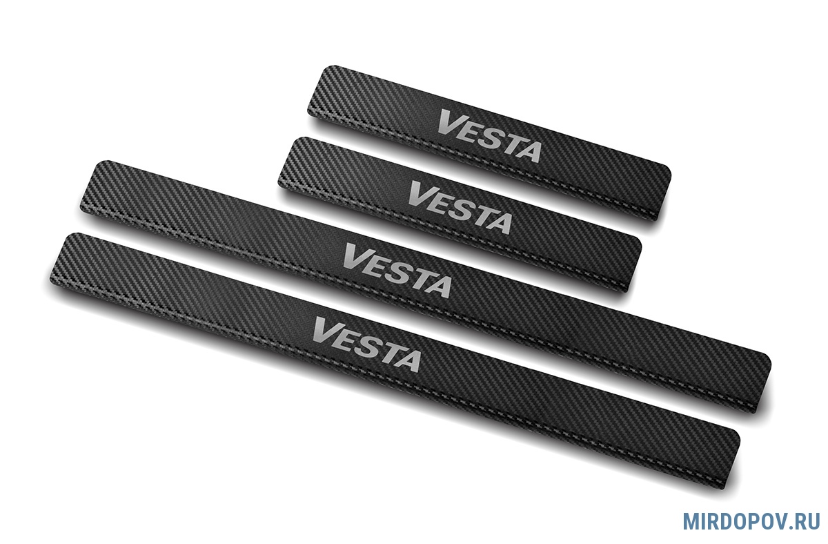 Накладки на пороги карбон с надписью RUSSTAL для Lada Vestaуниверсал (2017-2024) № LDVSSW17-06