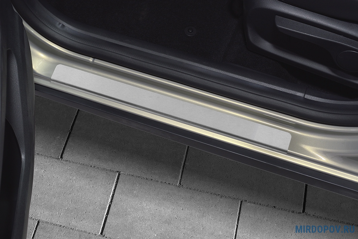 Накладки на пороги RUSSTAL изготавливаются из высококачественной нержавеющей стали марки AISI 304, за счет чего обладают высокой коррозионной стойкостью и прочностными характеристиками. Толщина металла накладок 0,5 мм позволяет защитить штатный порог автомобиля даже от скользящих и сильных точечных ударов. Все изделия разрабатываются исключительно по 3D модели автомобиля, за счет чего накладки идеально устанавливаются на штатный порог. Установка накладок производства RUSSTAL не требует сверления и другого механического воздействия на порог автомобиля. Установка производится на скотч 3М, который обладает высокой термостойкостью и влагостойкостью, а также хорошо себя показывает при высоких нагрузках. Эксклюзивная форма и надпись на накладке методом сатинирования позволят придать вашему автомобилю больше индивидуальности и преобразят интерьер автомобиля. При этом Вы всегда будете уверены в защите порога от сколов и царапин.