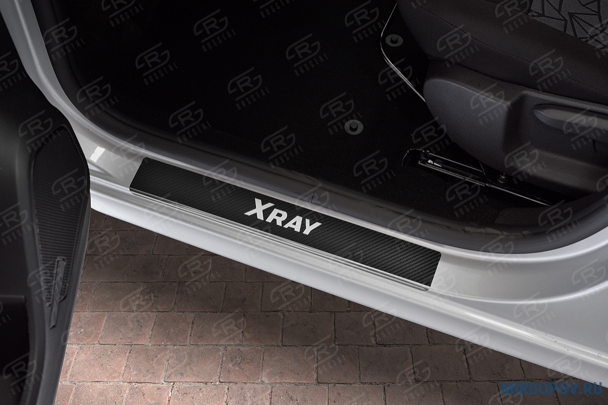 Накладки на пороги карбон с надписью RUSSTAL для Lada Xray (2015-2025) № LDXRY15-06