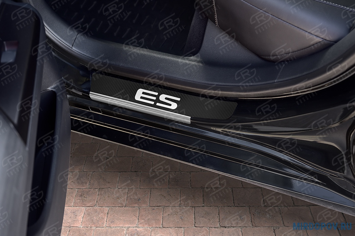 Накладки на пороги карбон с надписью RUSSTAL для Lexus ES (2018-2024) № LEXES18-06